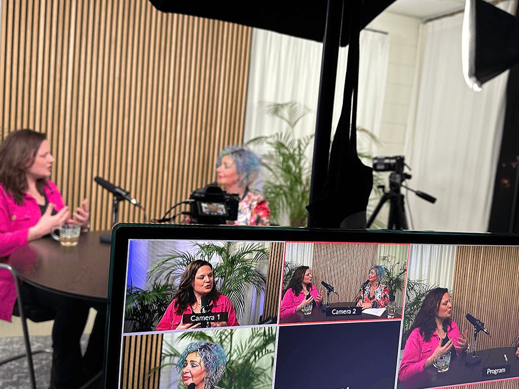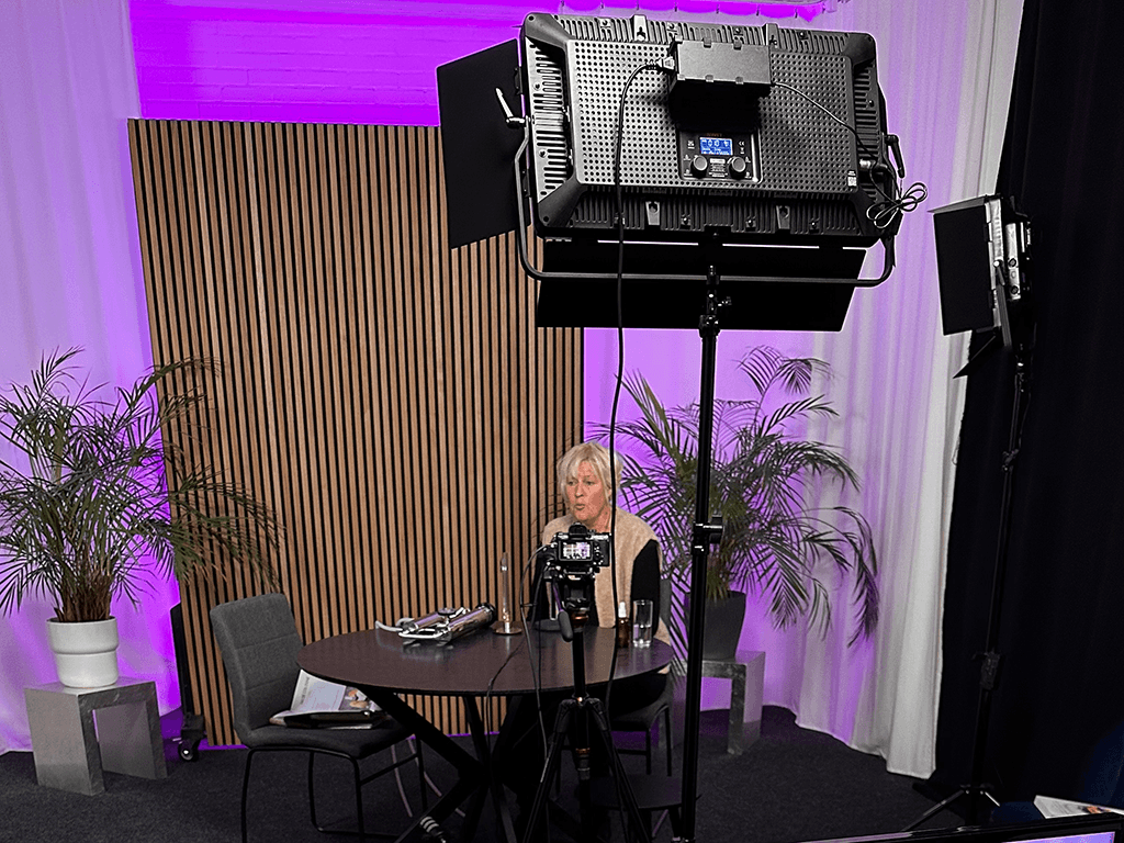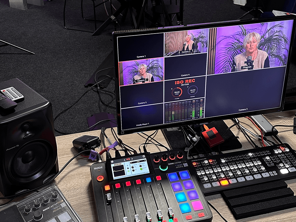 Volledig ingerichte video- en podcaststudio met alle technische ondersteuning.